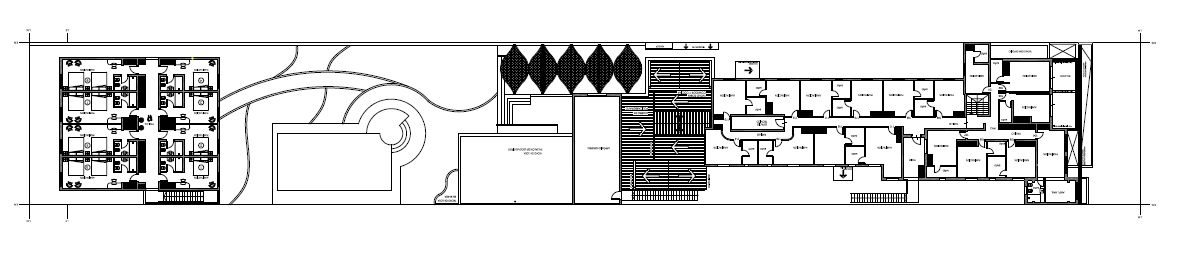 El hormigón como contrapunto de los planos etéreos recibe y resguarda al huésped en su arribo, mientras que la gran explanada de acceso y un imponente alero de hormigón visto hacen de fuelle entre el interior y el exterior. A su vez, el lenguaje fresco y descontracturado del hall incorpora elementos de diseño como un mural geométrico con toques de color y mobiliario de diseño.